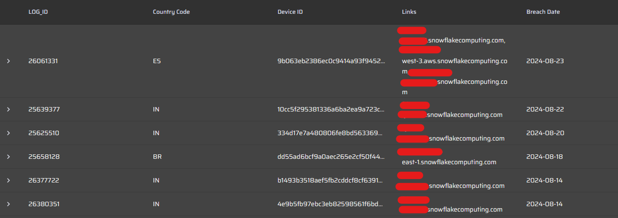 Snowflake, a cloud-based data warehousing solution, plays a crucial role in managing and analyzing vast amounts of business data. In 2024, WhiteIntel detected 2,096 credential leaks tied to applications associated with the "snowflakecomputing.com" domain. These leaks represent a significant threat to organizations relying on Snowflake for secure data storage and processing.