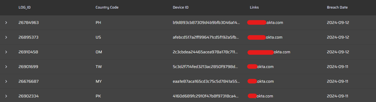 Okta, a leading identity and access management platform, is widely used to secure and manage user authentication across organizations. In 2024, WhiteIntel detected 45,191 credential leaks tied to applications with the "okta." prefix, highlighting its attractiveness as a target for cybercriminals.