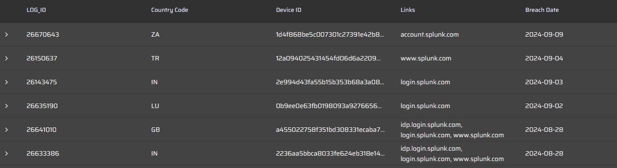 Splunk, a powerful platform for operational intelligence and log management, is widely used to monitor, search, and analyze machine-generated data. In 2024, WhiteIntel detected 3,519 credential leaks tied to the domain "splunk.com," making it a target for cybercriminals looking to exploit sensitive system data.